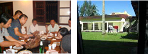 加蓬副總理兼外長(舉行特別舉行酒會宴請中方管理人員感謝他們對加蓬的經濟建設所作出的貢獻!營地的外部環境,空氣清新,草木蔥蔥。中方管理人員所住的營地,食宿條件都不錯,廚師還是我們四川派的。項目上還聘請了當地員工,中外員工之間建立了不錯的交情,體現了中非的傳統友誼。在異國他鄉喝著啤酒吃著烤全羊,享受著周末的快樂時光!