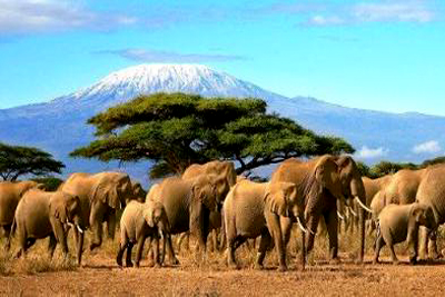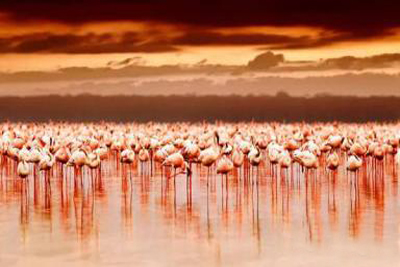乞力馬扎羅雪山下成群的火烈鳥翩翩起舞;