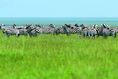一望無際的大草原被綠色覆蓋,動物們悠閑自在地生活在此,這里是它們的樂園。