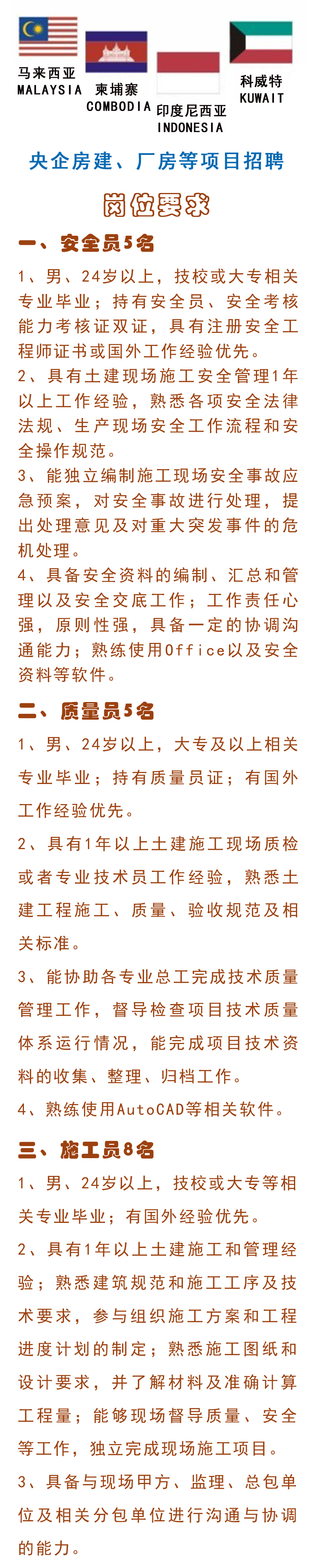 央企房建、廠房等項目招聘